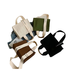 Lady's Stylish 16 oz小型ポータブルキャンバスショッピングバッグワンショルダークロスレターパターン付き
